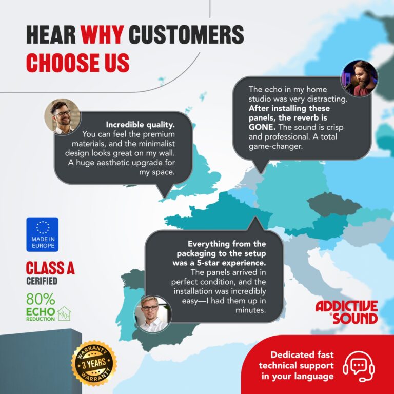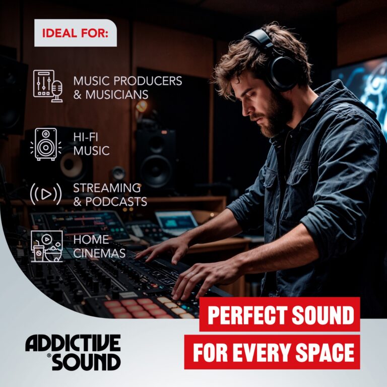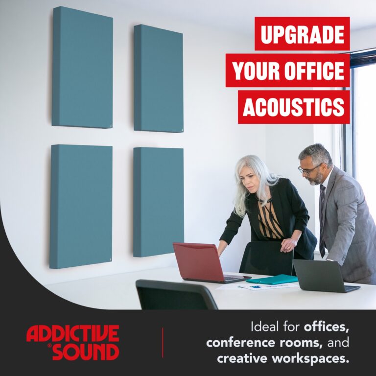 Each panel is signed with the Addictive Sound logo—a mark of quality and professionalism in acoustics.
