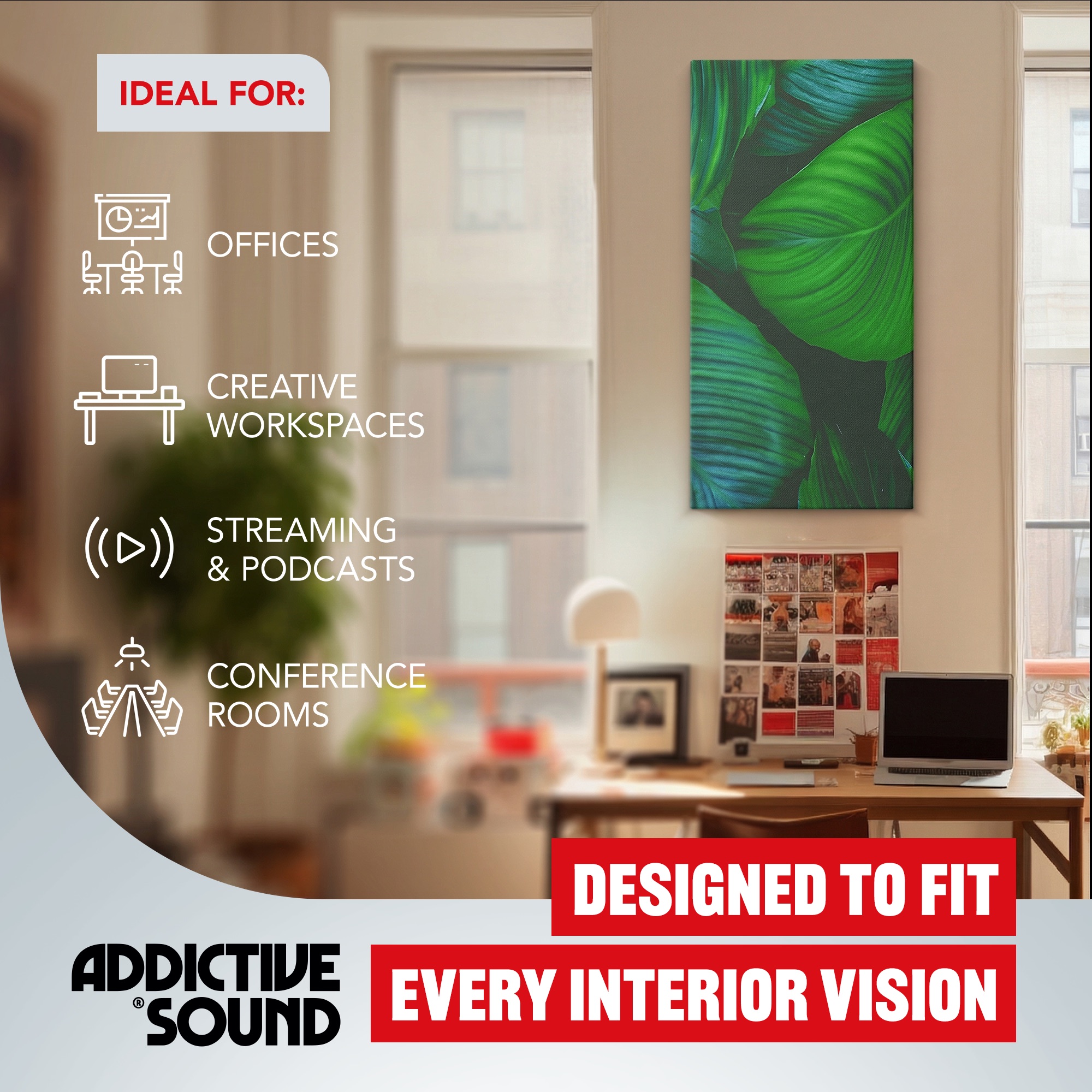 The Acoustic Picture blends art with function—a decoration that actively improves acoustic comfort. It fits any interior style.