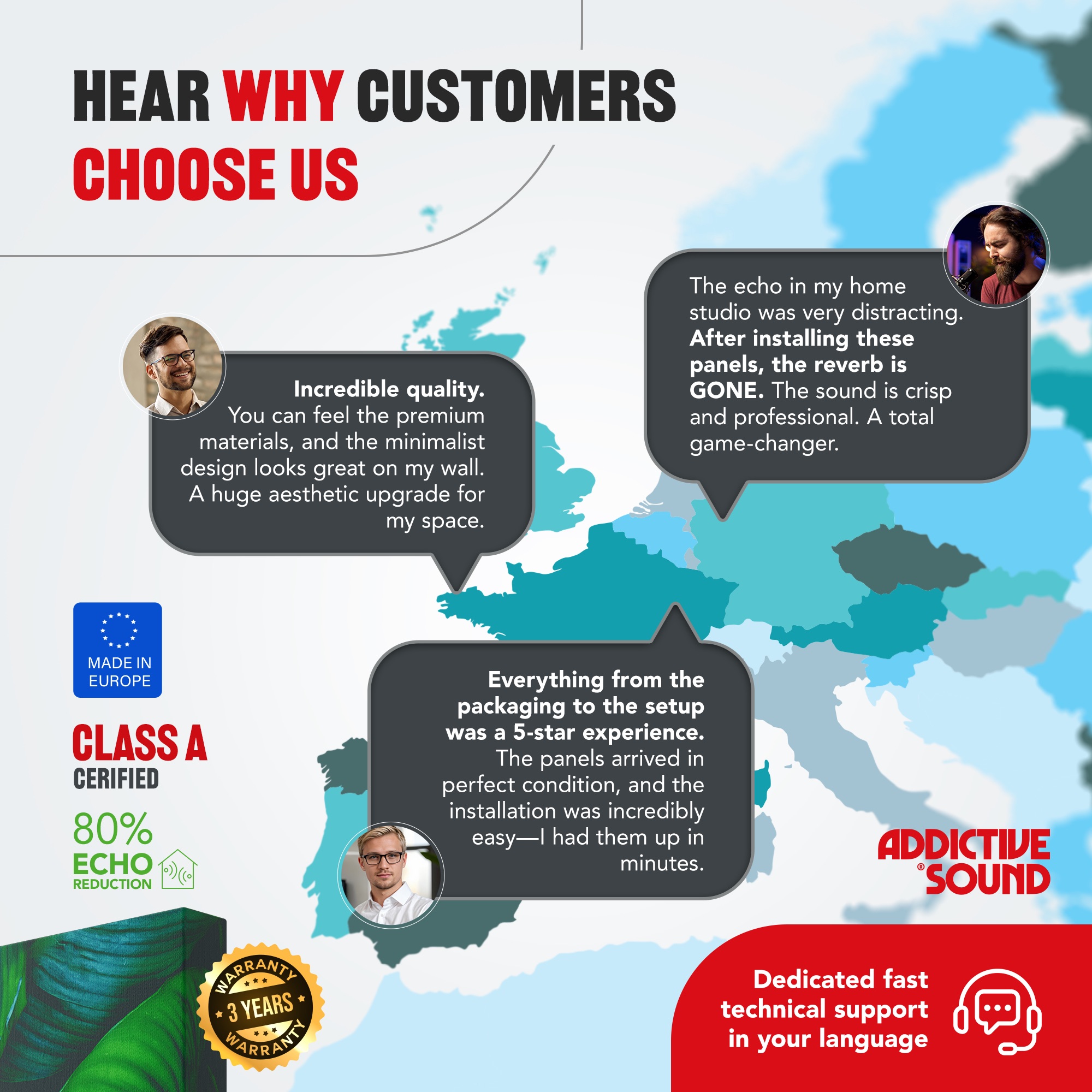 We provide free advice on acoustics, answer questions, and propose the best solutions tailored to your needs.